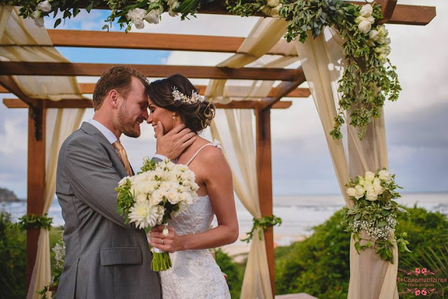 Verônica & Luis em seu lindo casamento de verão na Praia do Rosa. |